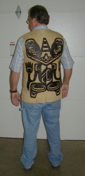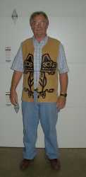 Second Generation WK Knife Builder, Dave Votaw wears the Moose Hide North West Coast design vest Walt made in the late 70's
