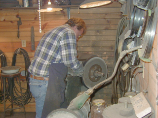 After David had ordered his knives from Walt, he would periodically stop by Walt's workshop to see what this "knife making" was all about. David's job allowed his Wednesdays off, and on those days you could often find him in the company of Walt. Having been raised on a farm, David was taught that you don't just stand around and watch people work...you help. So, it didn't take him long to ask Walt if he could help him with some of the knife-making process. Walt had some leather that needed sewn, and that was the first of many things that he showed David how to do.